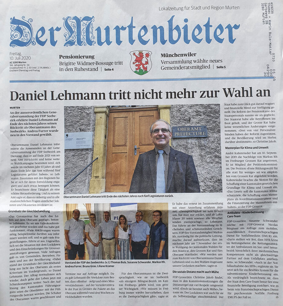 1996 wurde Daniel Lehmann erstmals ins Oberamt des Seebezirks gewählt. Nächstes Jahr will er aufhören.
